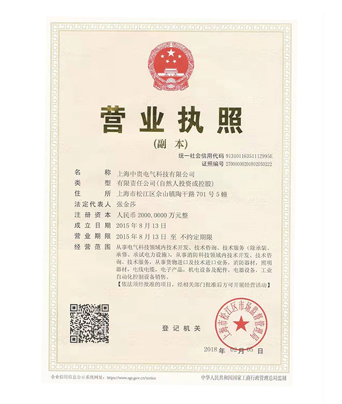 中贵电气营业执照_上海中贵电气科技有限公司